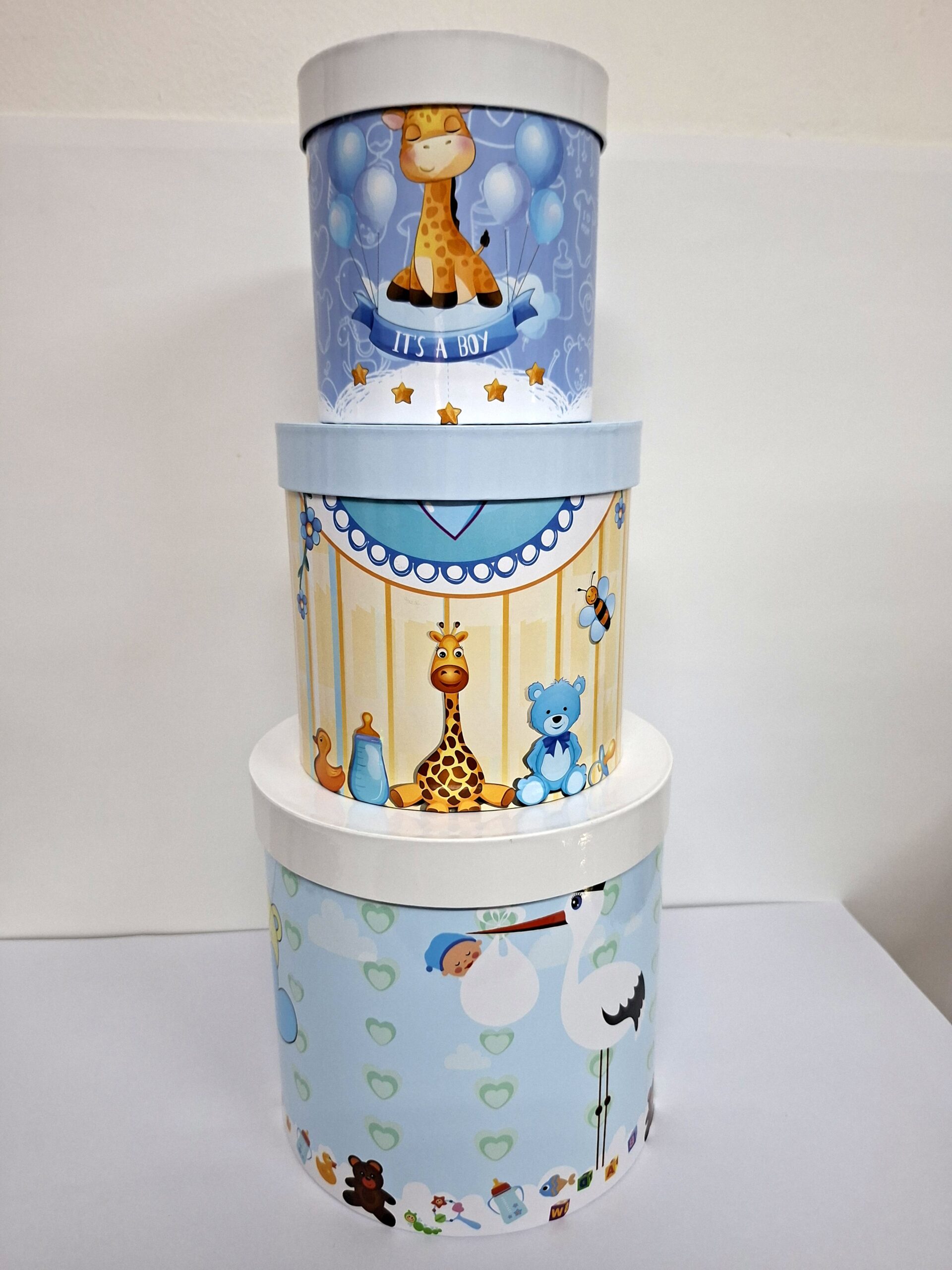 Set kutija od papira sa veselim, zanimljivim i nežnim motivima za bebe.